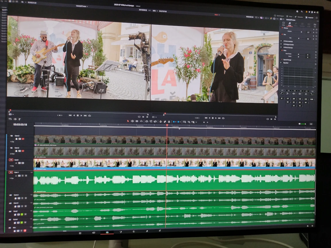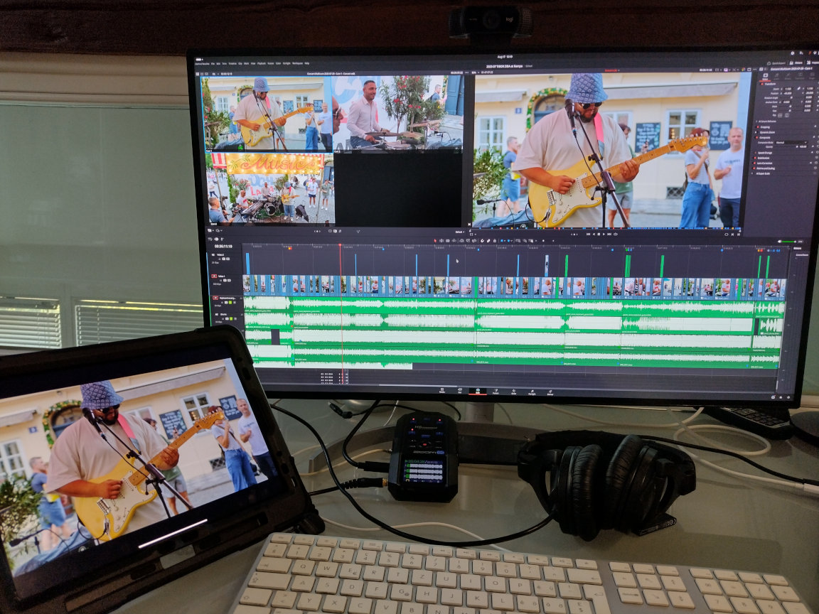 We record instruments, vocals and audience applause on different tracks, either through our own microphones – for acoustic concerts, and/or by picking up the sound engineer front of house mix. This allows us to improve the sound in post-production: balancing sources, equalization, compression.
